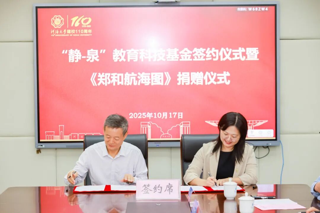 河海大学举行“静-泉”教育科技基金签约仪式暨《郑和航海图》捐赠仪式